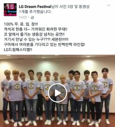10월 8일 구미 엘ㄹ지 드1림 페스티벌에 세븐틴 나옴!