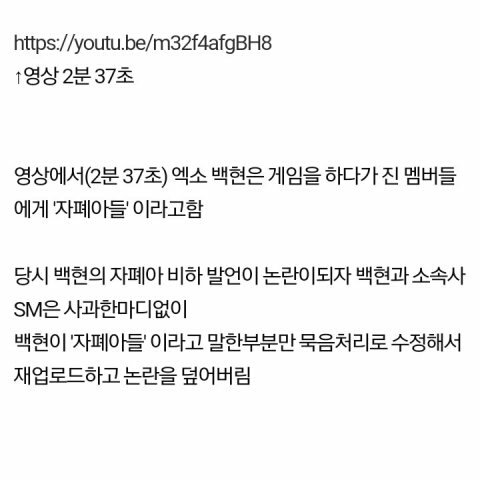 -처음에는 '백현이 팬 때릴려는 영상'으로 올라왔지만 sm이 다 삭제하고 엑소팬들이 쉴드용으로만든 '사생 어쩌구' 제목의 영상만 남음