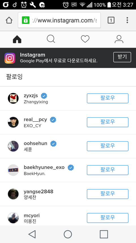 엑소 팔로우 되어있움ㅋㅋㅋㅋ