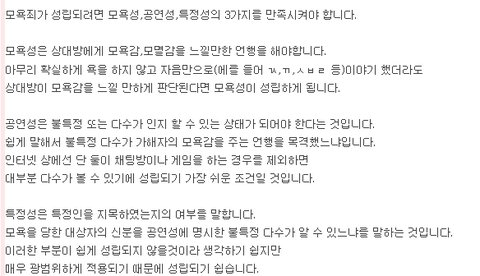 위에 짤은 고소할때 모욕죄로 성립가능한 조건 기준이고