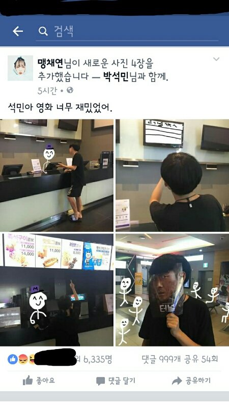 맹채연이 여친있는애랑 둘이서 영화보고 그걸페북에 여친보란듯이 올림. 증거 사진출처-맹채연 페북 참고로 남자애여친은 조유*란사람임.베댓에 욕졶만