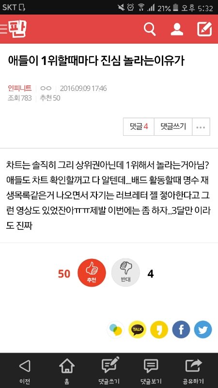 애들이 1위해서 놀라고 감격스러워하고 팬들한테 고맙다고 늘 처음처럼 기뻐하는 게 음원순위 낮아서 겨우 1위해서 그렇다라고 해석하는게 정상인거야???? 추천은 왜 저렇게 많음???? 진짜 이해 안되는데.....