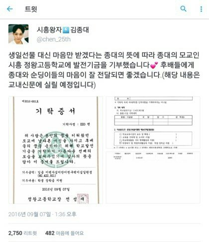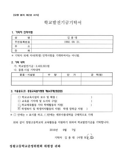 순딩이들 종대 모교 정왕고 기부