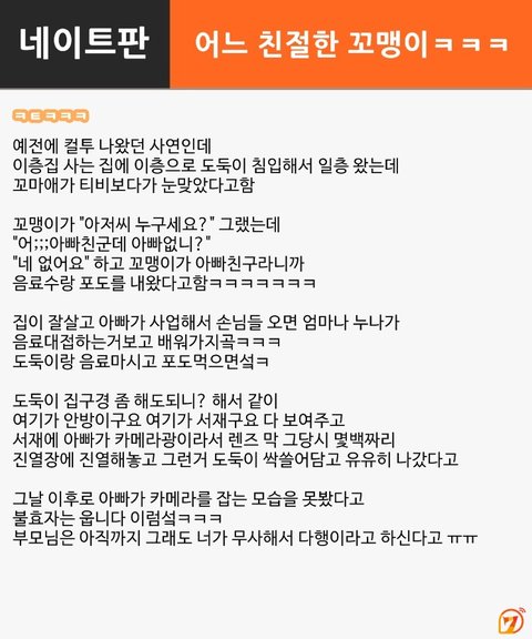 * 관련 포스트가족 일화 모음 3탄 <댓글헌터 67>가족 일화 모음 2탄 <댓글헌터 57>가족 일화 모음 1탄 <댓글헌터 43>음식점에서 생긴 일 <댓글헌터 59>댓글러들의 못말리는 라면이야기 <댓글헌터 19>