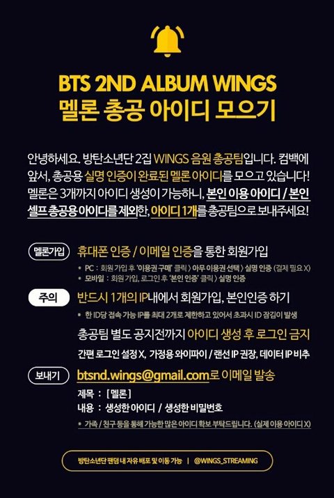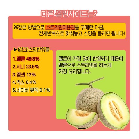 10월 중으로 정규 2집 나오잖아 멜1론 안 쓰던 이삐, 스밍 못 돌리던 이삐들도 본인인증 해서 저기 메일로 아이디 비밀번호 보내면 스밍권 결제 안 해도 저기에서 알아서 돌리구 해 줄거야! 대신 저기 홈에서 공지 뜰 때까지 그 아이디 들어가면 안 돼