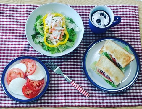 양상추 샐러드랑 돈까스 샌드위치 그리고 카프레제.