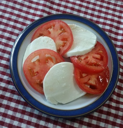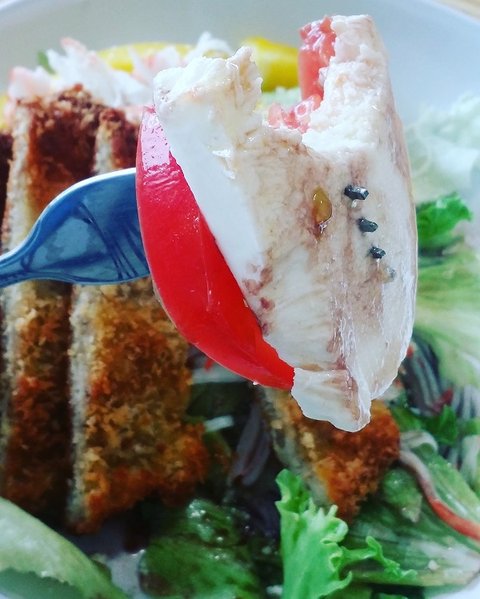 카프레제랑 샐러드 그리고 샌드위치 넣고 남은 돈까스 이렇게 먹었다는~