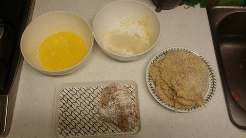 겉에 밀가루 바르고 계란물 입혀서 노릇하게 기름에 지져주면 완성!