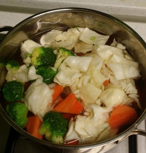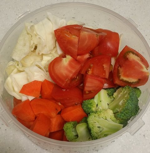 양배추, 브로콜리, 토마토, 당근을 1:1:1:1 비율로 준비해서 썰어둡니다~