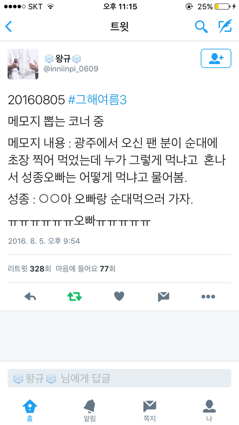 순대.....오빠 순대같이먹어줘 ㅠㅠㅠㅠㅠ내가 떡볶이국물 쏠게...