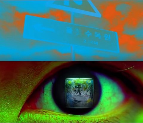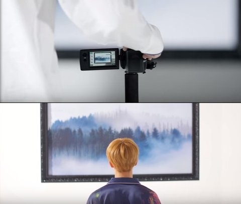 풀꽃수목원 표지판이 반전될 때 동시에 나오는 호석이 눈에 태형이 그래피티
