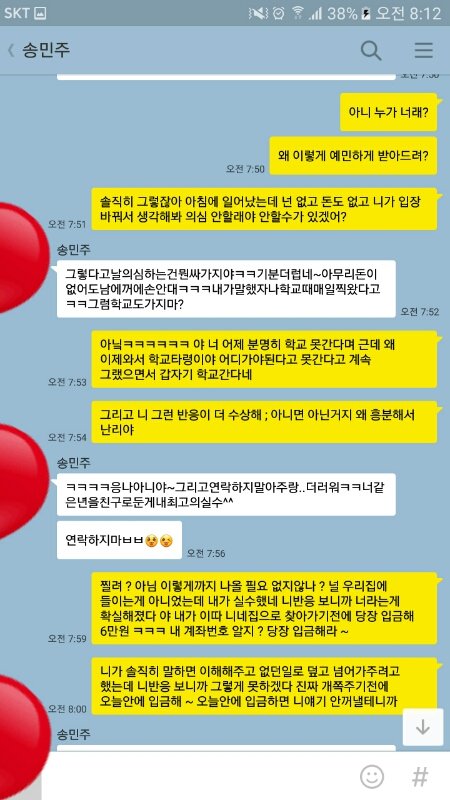 반응보면 미친년을 넘어선 싸이코같음 ; 솔직히 지가 나한테 버럭할일이 뭐있음 ? 밥맥여줘 커피맥여줘 재워줘 만나는내내 지는 돈 한푼도 안쓰고 내가 취업했다는 이유로 뜯어내기 바빴으면서 이젠 돈까지 가져가네 미친년 진짜 살다살다 이런 경우는 처음이네 저 미친년 어떻게 해야됨 ? 당황스럽다 ㅠㅠ