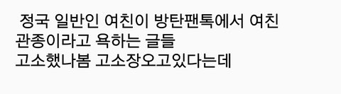 여친 아니고 욕 안 했음. 팬들 가지고 놀듯이 주작하고 관심 끌고 하다가 걸렸고 팬들은 정국이 이미지 걱정돼서 빅히트에 메일 넣고 정리글 쓰고 했음. 고소 당했다는 팬도 사실만 정리한 글 쓴거고 욕 일절 없었다.