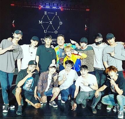 찬열은 11일 자신의 인스타그램에 '엑소' 멤버들, 그리고 유재석, 정준하과 찍은 단체사진을 올렸다. 공연을 앞두고 인증샷을 찍으며 친분을 인증했다.