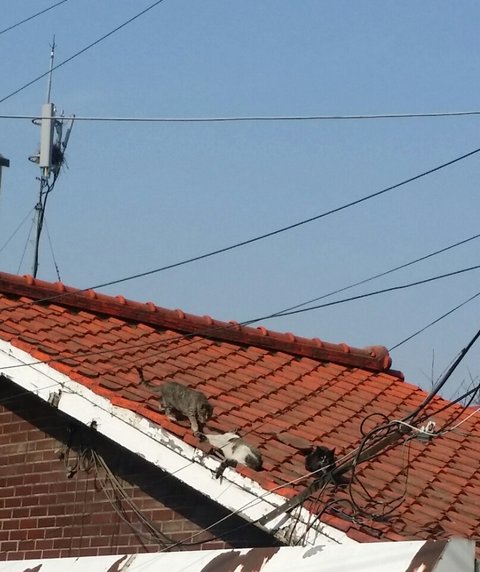 그 지붕에 이년동안 고양이가 두번 새끼낳는것을 보았어요.