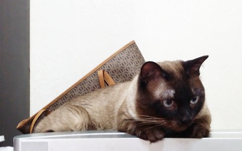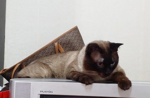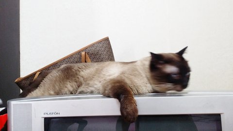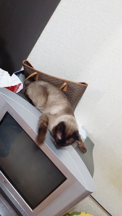 한참을 두리번 거리다 티비위에 자리를 잡았습니다.