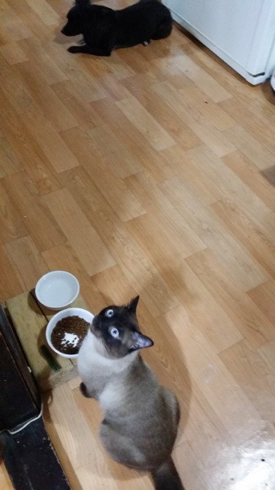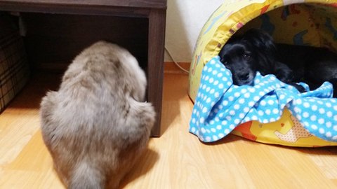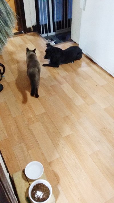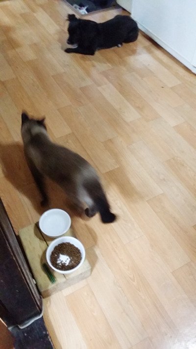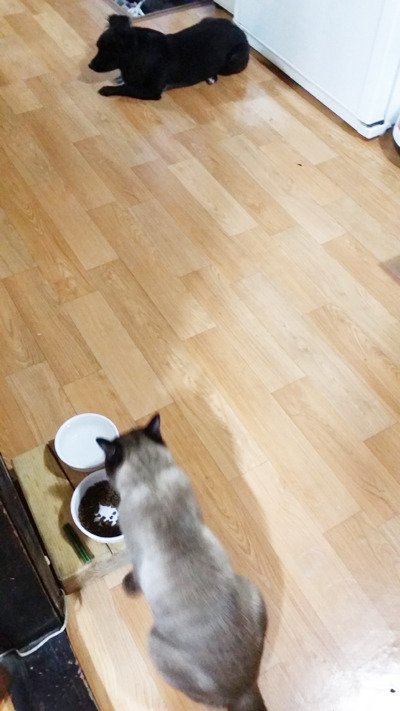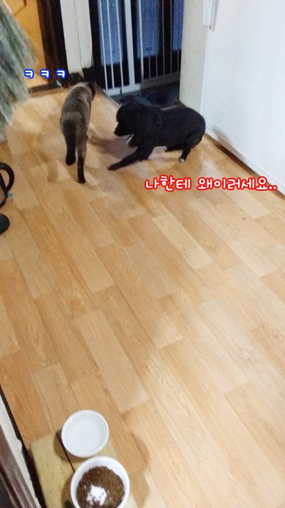 자기밥을 먹는데도 반응 없는 코코에게 다가갑니다.