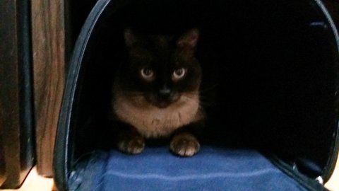밥먹고다말고 코코의 이동장안에 들어갑니다.