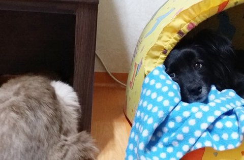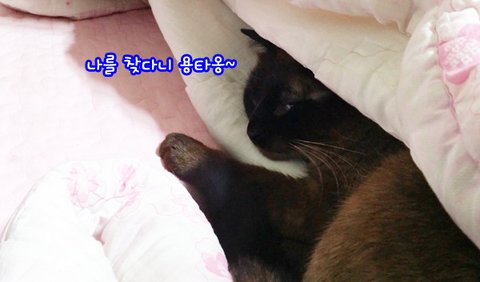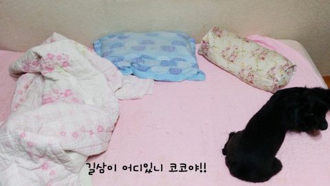 하는 바람에 이불을 살짝 눌러봤더니 그안에 길삼이가 뙇~