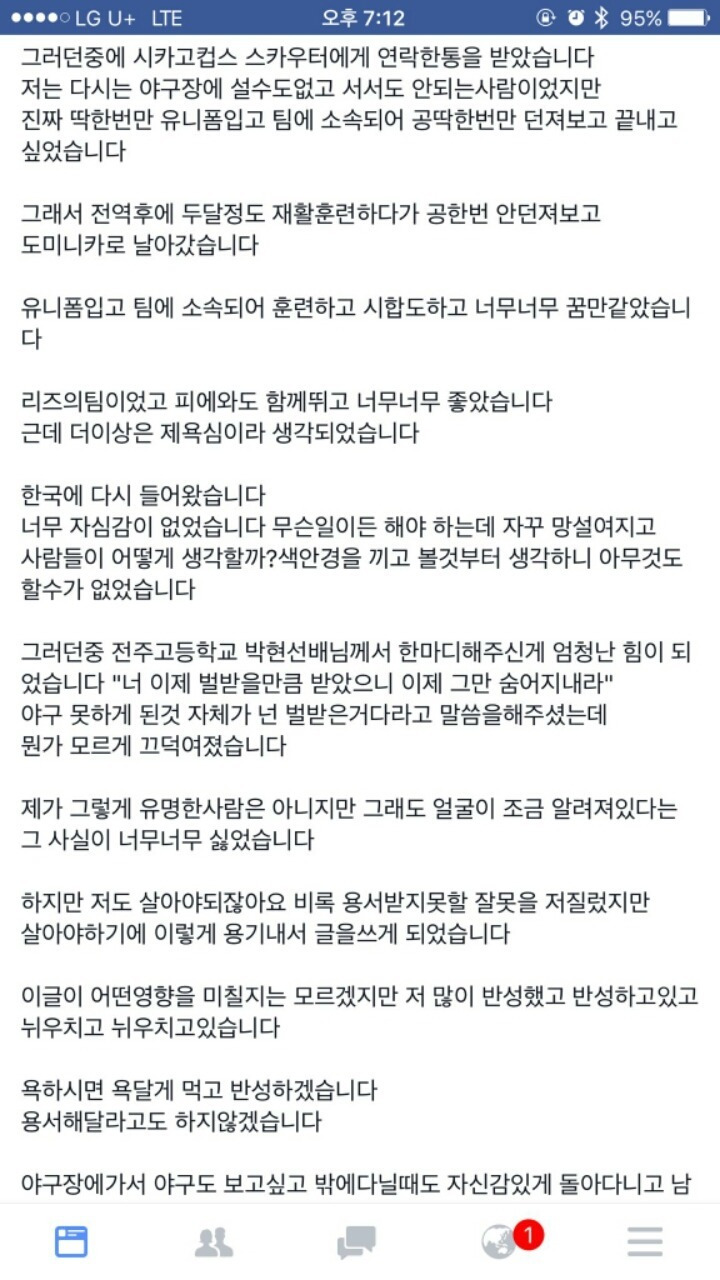승부조작으로 제명된 박현준 근황