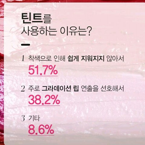 난 립스틱! 뭔가 틴트는 입술색 다 빠지는느낌들어ㅜㅜ 알고보니까 립스틱이 성분이 더 안좋은게 많다네..? 이유는 잘모르겠어 다들 댓남겨죠