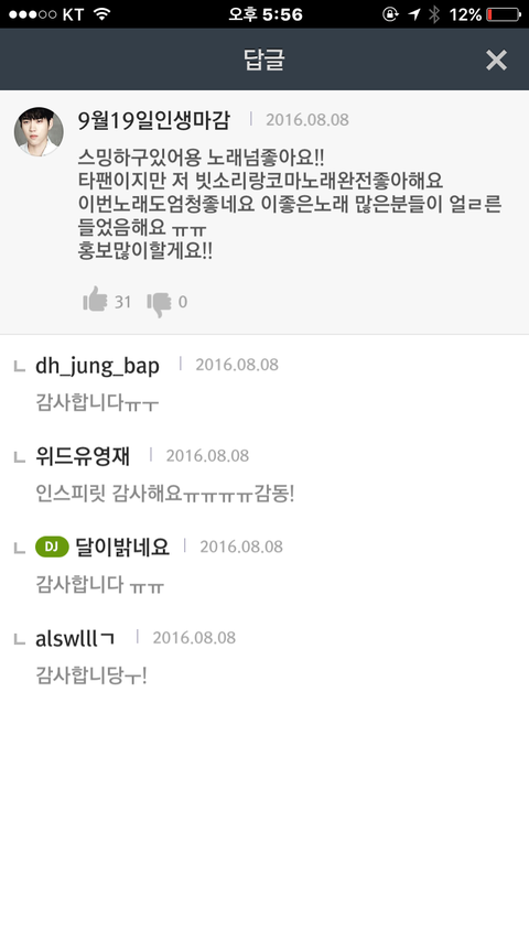 내가 울애들말고 타그룹이라도 노래듣고나서 너무조으면 리뷰달고다니는데 ㅠㅠㅠ한 뷰1티분한테이렇게 쪽지오고 댓ㅅ글에 잉피 컴백하면 열스해주신단분들 계셨당 신낭 오예ㅠㅠ