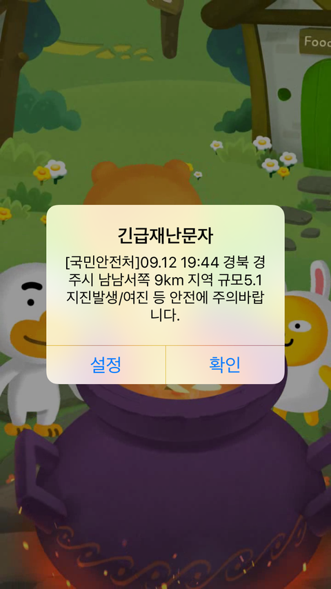 재난경보 지진끝나고 옴^^