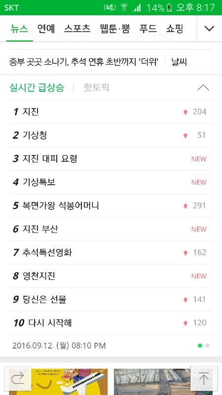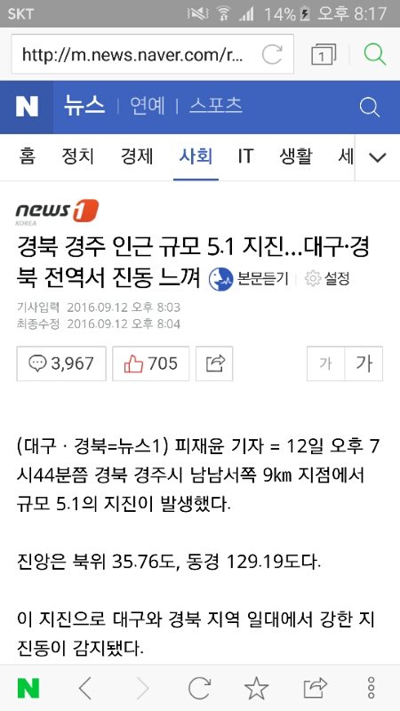 빅스랑 관련된 일은 아니지만 별빛분들 조심하세요ㅠㅅㅠ.. 대구랑 경주 등등 여러곳에서 지진이 심하게 일어나고 있네요! 약한게 아니라 5.1정도로 일어났다고 하니 조심들 하세요!!