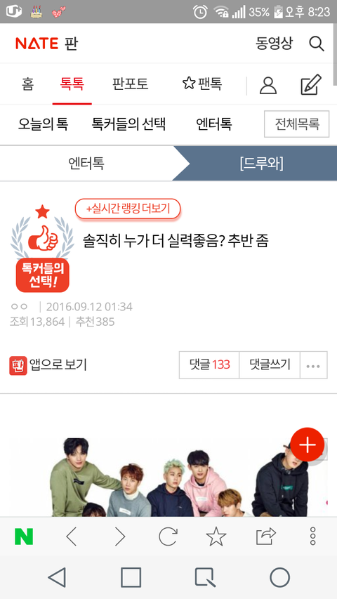 추반글이더라구 근데 비투비vs비스트임 솔까 둘이 개잘함 근데 비스트가 연륜이있고 더 잘해서 비스트에 쏠릴줄 알았는데..