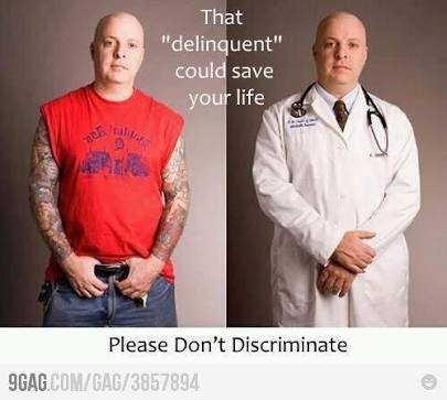 외국에 이런 속담이 잇음. Don't judge by book cover. 온 몸을 문신으로 휘감은 사람이 사진을 찍어 올림. 사람들의 생각을 물어봄 그 사람의.직업이 뭘까. 외국사람들이 문신에 관대할것같지만 .. 서양인들도 복불복 ..임 반반 . 이라는 말 ... 하여간 .. 그 몸전체에 문신으로 뒤덮힌 사람은 엄청 유능한 .. 의사였음 .. ^-^ ... 아 ... 자영업이라면 ?? 근데 막 ... 온몸에 문신있고 자영업 .. 술집같은거 한다고 하면 ㅋㅋㅋㅋ 솔직히 양아치같아 보이기는함.... 딱 이런거임 .. 엄청예쁜여자가 밤에 일을한다고 함. 그럼 대부분위 사람들은 술집에서 일한다고 생각하는것처럼 ....