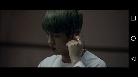 화면상에서 석진이 인이어는 왼쪽에 꼈는데 우리 이어폰은 오른쪽에서 치직거림