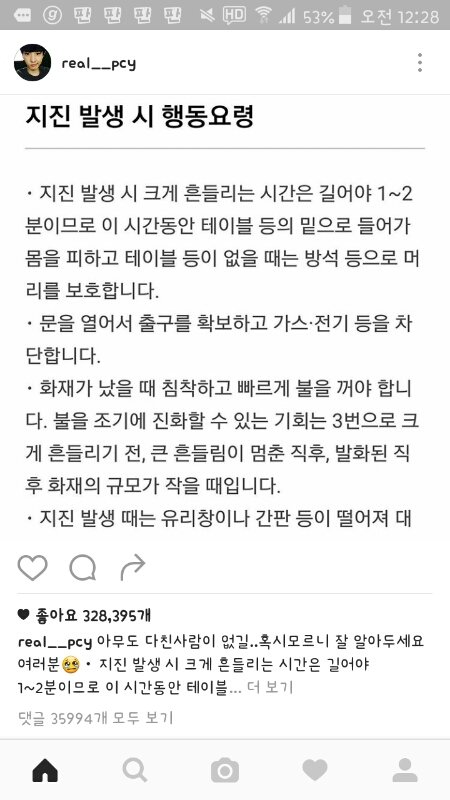 정말 배배 꼬였구나 너네. 진짜 팬 걱정해서 지진관련 정보 찾아서 자기 인스타에 직접 올려주면 관종..? 언제부터 팬걱정은 관심받고싶어하는게 된건지 노이해... 언젠가부터 울면 가식 웃어도 가식 무표정이면 인성논란... 도대체... 여긴 이해할수없는곳이다...