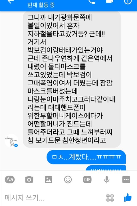 아 그리고 저 얘기 처음 나오게 된건 얘가 뜬금없이 태태랑 정꾸가 요새 너무 좋다고 해서(타팬임!) 왜?했더니 마음이 넘 이뿌대 우째아냐 했더니 목격담 말해 줬어..♥♥