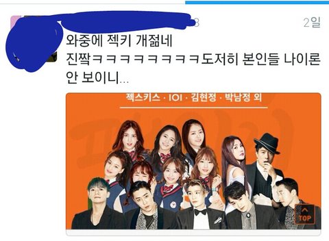 님들이 그런식으로 댓글써봤자 젝키는 왠만한아이돌보다 잘나가고있고 팬들은 재밌게살고있음^^ 구리게 댓글쓴사람들 가수님들이 똑같이 부메랑맞길바래요~