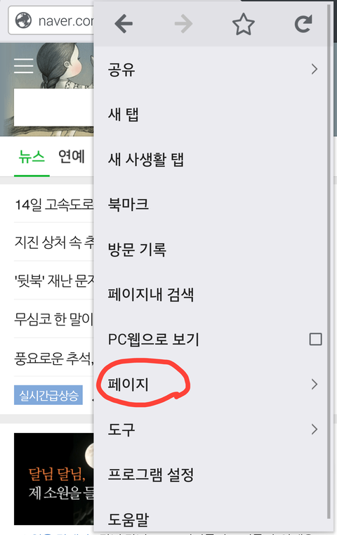2. 캡쳐할 페이지에서 상단에 빨간색으로 표시한 부분 누르기