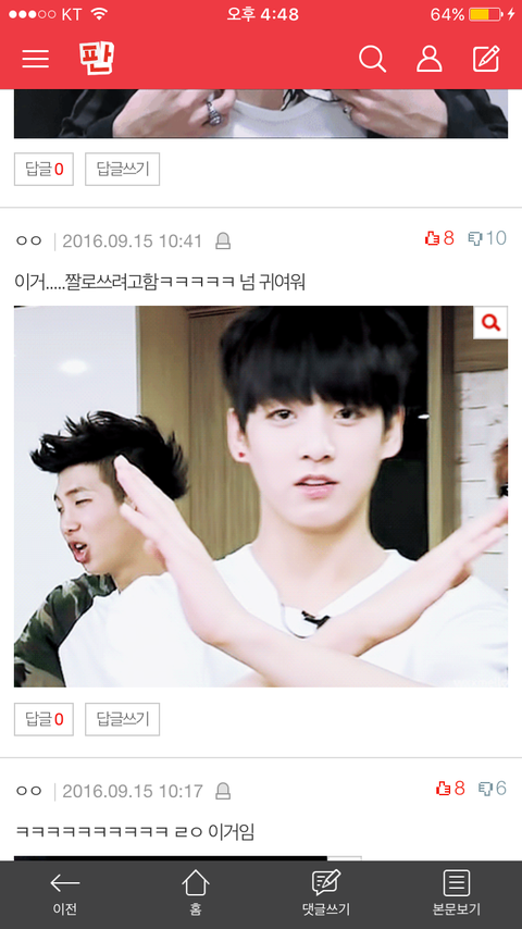 방탄이 대체 뭘 잘못했다고 매번 댓글이나 글 올릴 때마다 반대가 이렇게 쌓여? 이것도 지금 실시간랭킹? 그거에 있는 댓글인데 ㅋㅋㅋ 반대봐