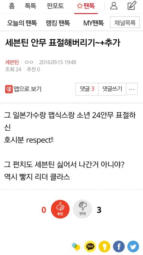 어떤분이 댓글에 소속사에 신고하겠다니깐 글내려버림