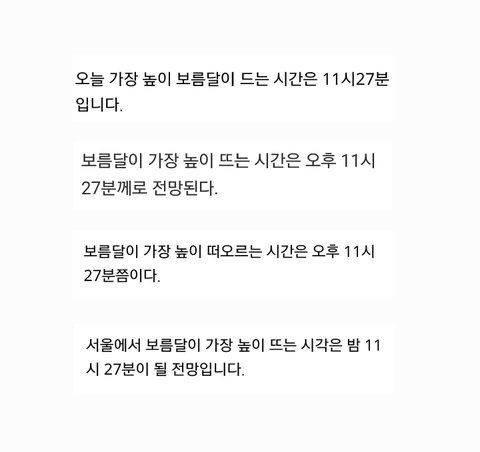 오늘 찬열시에 보름달이 가장 높게 떠오른디ㅐ