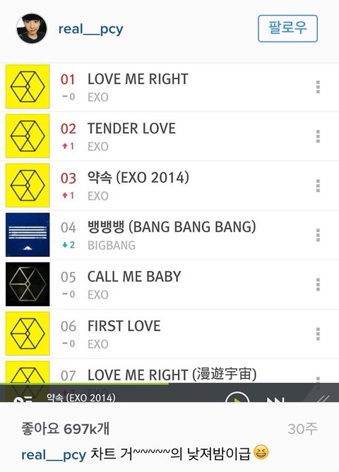 팬들 화력 대단하다는얘기임ㅇㅇ 팬들이 음원 1위 못시켜줘서 미안하다면서(뱅뱅뱅이 1위였고 럽라가 2위) 그래서 팬들 부둥부둥 해주려고 올린거임 글쓴이는 글 해석을 참 특이하게 하네;;