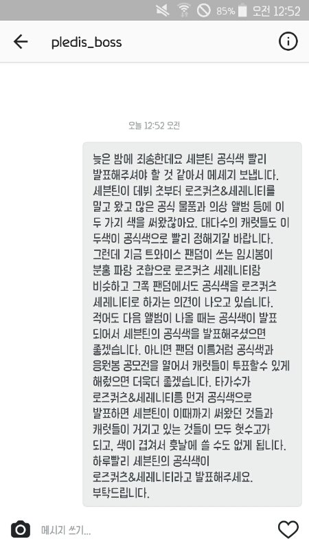 보스한테 공식색 관련 인별 다이렉트 보냄