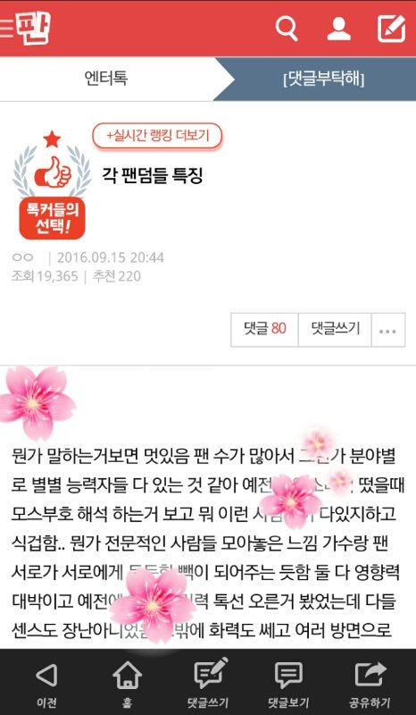 이 글 2번째에 우리 팬덤 칭찬 있음