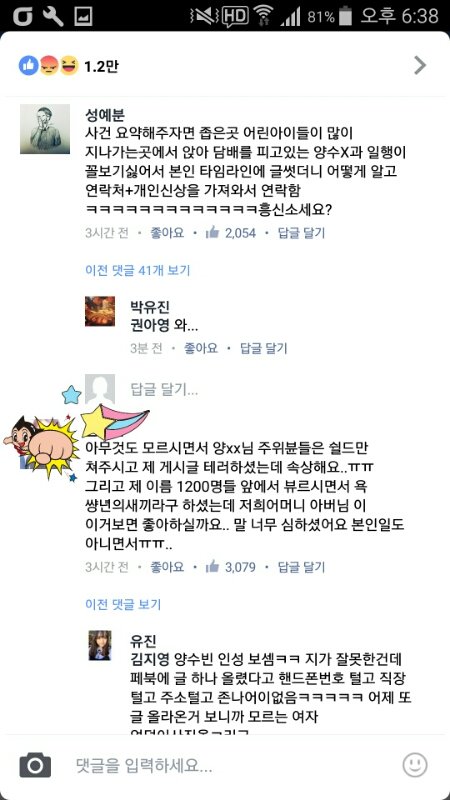 으휴 내가 이래서 페북스타?ㅋㅋㅋㅋㅋ들을 싫어해 그토록 간절히 원하는 관심받으면 착하게좀살지 어휴그냥ㅎㅎ