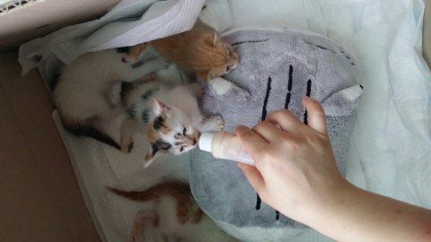 지인이 3주된아깽이들 구조후 초유 구하기 힘들어서 아이들 아사직전입니다. 지인들동원해서 간신히 한통 두통구했지만 네아이들먹이기엔 너무나부족하네요.