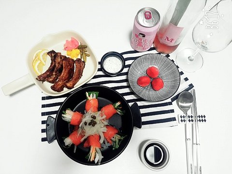 3. 쪽갈비구이 + 연어말이