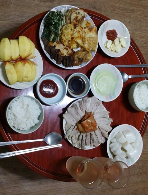 모듬전&보쌈&송편술떡&사과&밥