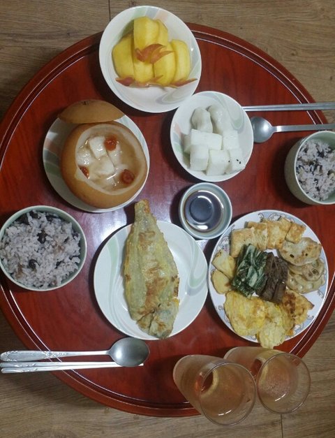콩밥&배꿀찜&가자미구이&술떡송편&사과&모듬전