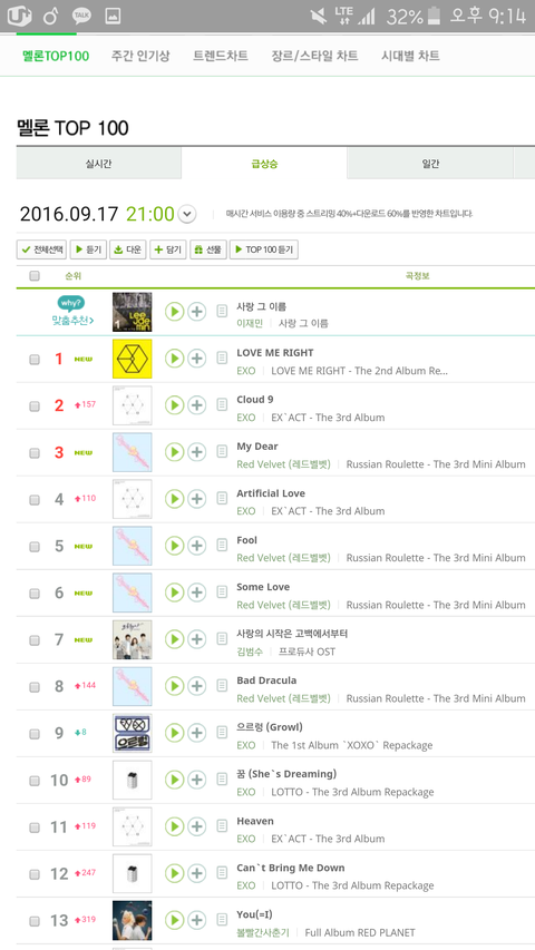 급상승엑소곡있는건 머글들이듣는거잖아ㅋㅋ스밍목록곡도아님