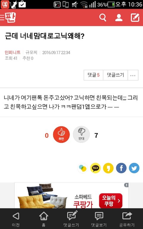 닫페 나눔 쓰닌데 너네 고닉 왜해? 쓰니한테