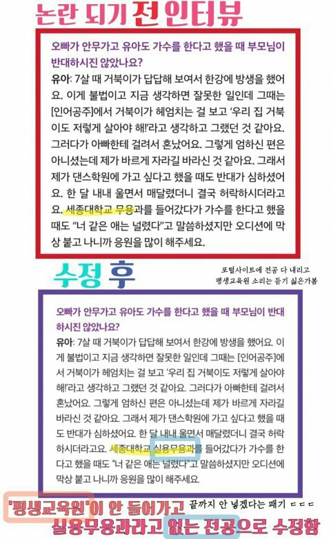 유아 학력은 애초에 제대로 말했었는데 기자가 세종대학교로 잘못 보도한 걸 왜 유아한테 난리야; 그래서 소속사가 정정했잖아