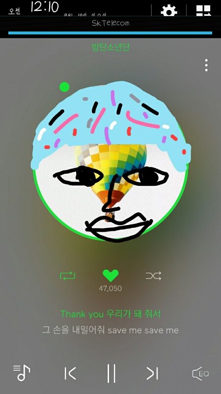 맞아요....저는 그림에...소질이없어요....ㅎ하하ㅏ (머리는 남준이가 여태해왔던 머리색을 표현하고자 저렇게 그린거야...하하하하하하하하하)....